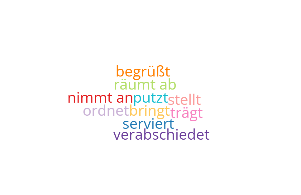 In this lesson, we take a closer look at the activities of the waiter of the Hotel "Zur Traumbuche", using SPO sentences to describe what he does.