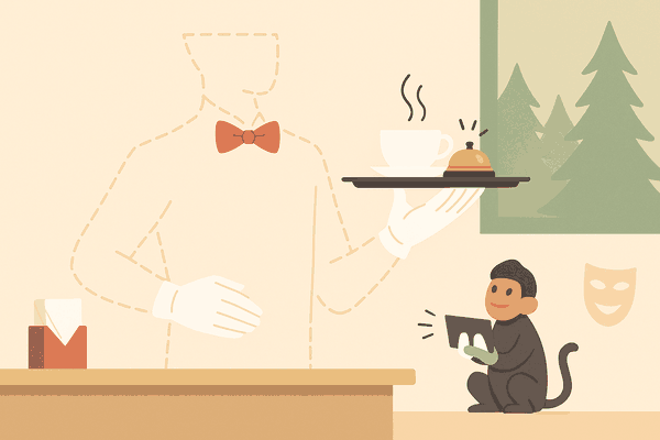 In this lesson, Ermanno and Oliver reflect on the typical actions of a particular profession: the waiter (der Kellner). They admire the waiter who performs his work in a way that is not meant to be noticed but is perfectly useful and right.