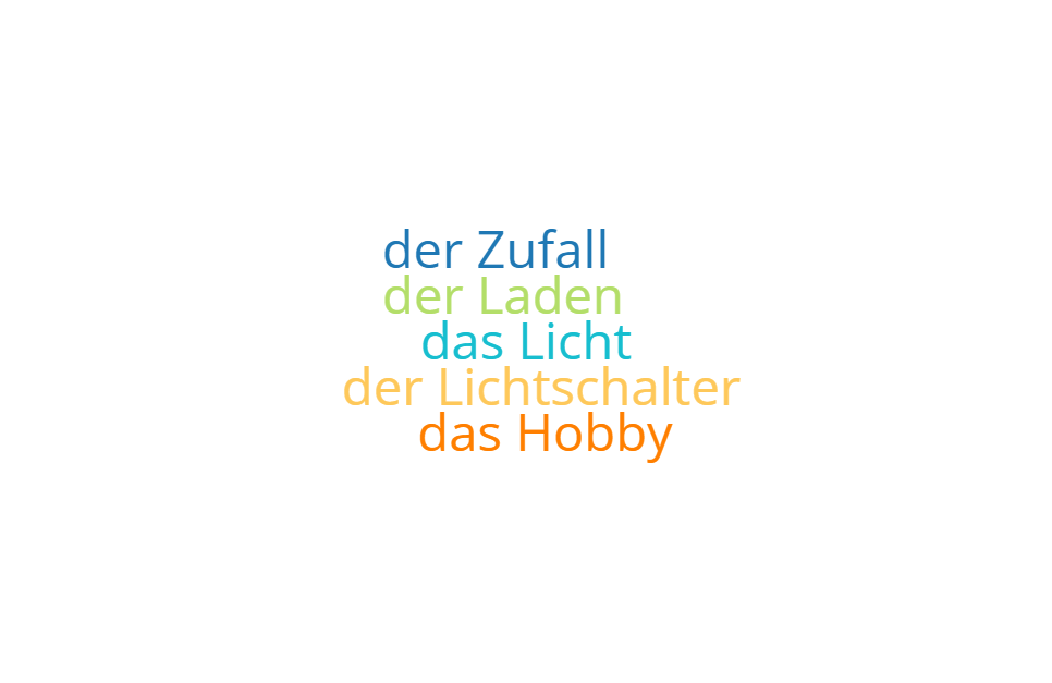 Ich gehe mit Max in einen kleinen La___. „Guten Tag!”, sagt Max. „Gibt es denn kein Li___? Es ist sehr dun___ hier”. Ein Mann sagt: „Hallo. Was möch___ Sie?” Max sagt: „Ich bin ein Ma___. Ich möchte Li___!” Der Mann sagt: „Ah, gut! So ein Zuf___. Mein Hobby sind Lam___. Gro___ Lam___, kle___ Lam___, he___ Lam___, dun___ Lam___!” „Was soll ich mit einer dun___ Lampe?”, fragt Max. Der Mann sagt: „Li___ machen. Das ist lei___”. Er drü___ auf den Lichtschal___, und der La___ wird hell.